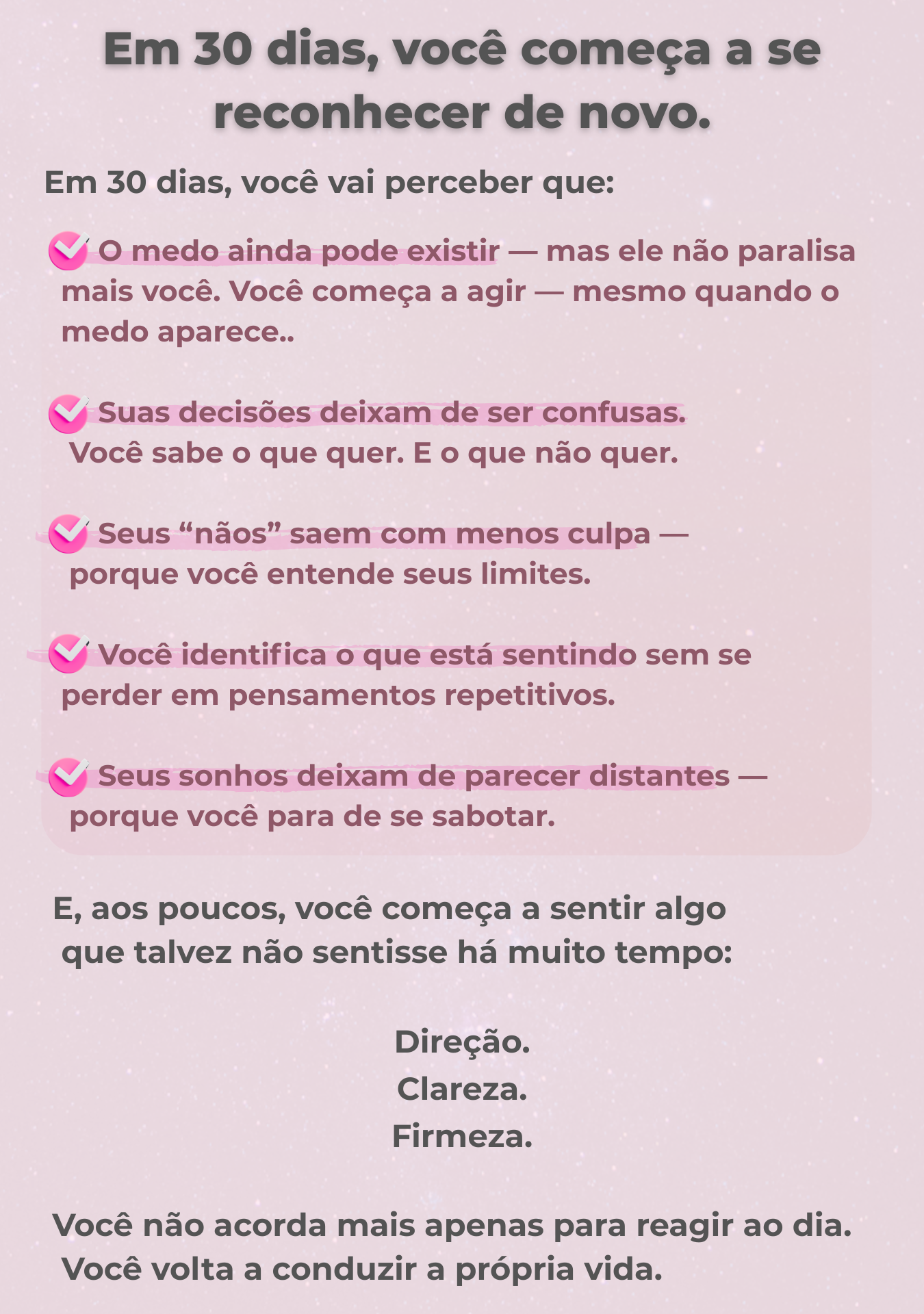 as decisões deixam de pesar tanto, e você volta a se sentir no controle da própria vida.